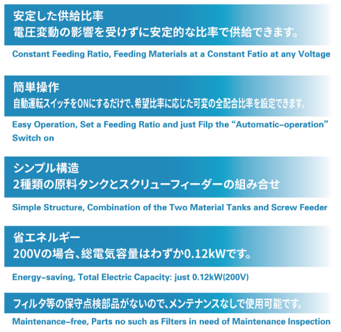 廉価型容量計量裝置 カワタのミックタンクは2種類の材料(主材+粉碎材)を任意の混合比率で供給可能な簡易計量機(jī)です。